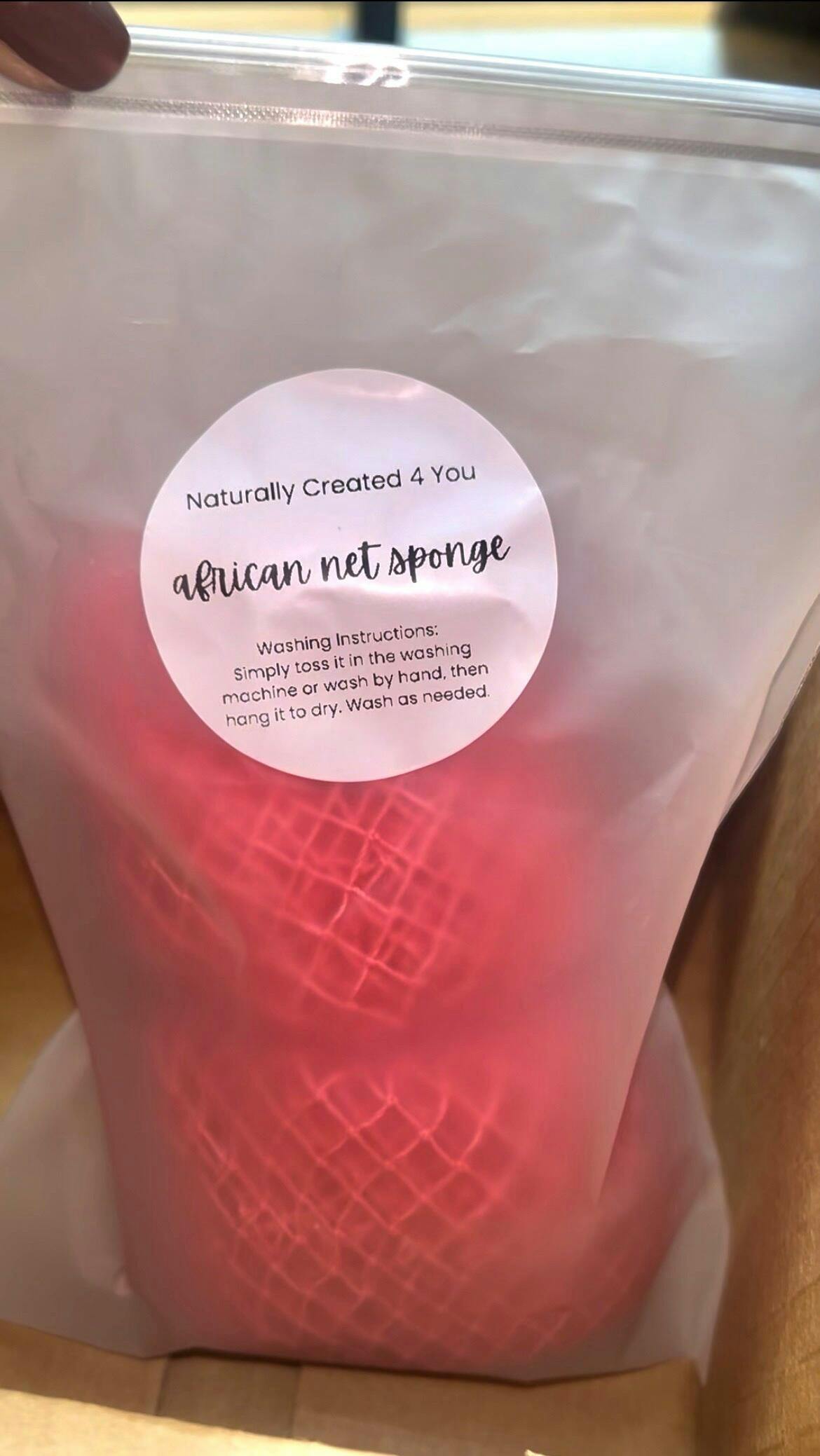 I purchased the Pink Exfoliating African Net Sponge and I absolutely love it so far ♡. I use liquid African black soap for body wash and the net sponge creates such a rich lather every time I use it in the shower. I have more sensitive, eczema and acne prone skin, and this net sponge isn’t too rough for me. This net sponge also dries much faster than my old loofahs. While I can easily ball it up in my hands like a loofah, I love how long it is as well.
